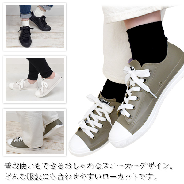 防水性とデザイン性を両立した、ローカット・レインスニーカー。