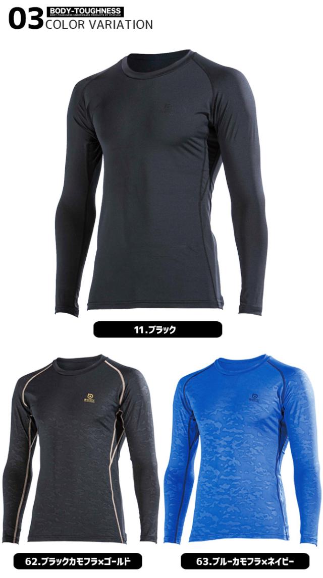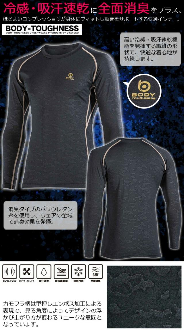 1点までネコポス可 クールコンプレッション BTパワーストレッチ デオドラント ロングスリーブ クルーネクシャツ JW-643 ボディタフネス おたふく手袋 長袖 接触冷感 消臭 吸汗 速乾 UVカット ストレッチ インナー 作業服 春夏用