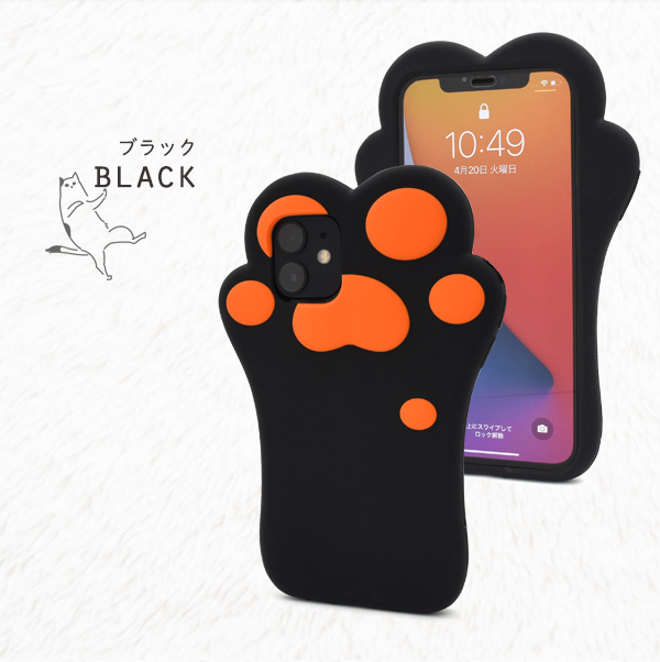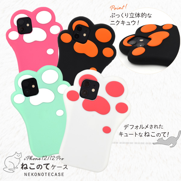 スマートフォンケース iPhone12 iPhone12Pro用 ねこのて アイフォンケース 装着簡単 可愛い 猫の手 にゃんこ ねこ 肉球 シリコンケース スマホケース 背面保護 携帯ケース キュート かわいい お洒落 背面 保護カバー バックカバー 猫グッズ 黒猫 白猫 SoftBank au docomo