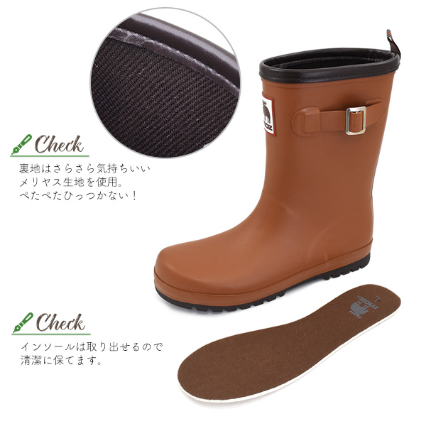 カントリー風の、ナチュラルなデザインのレインブーツ。