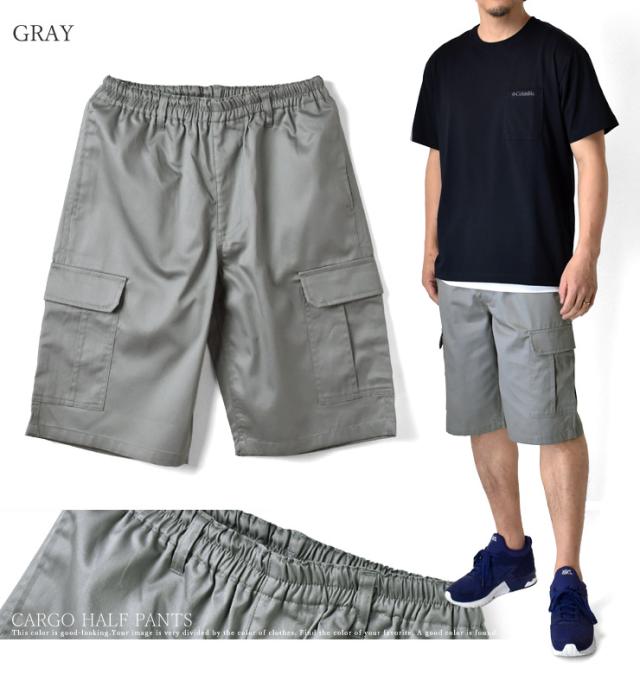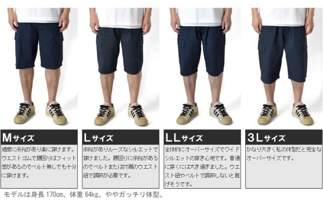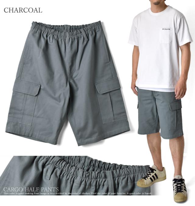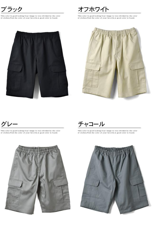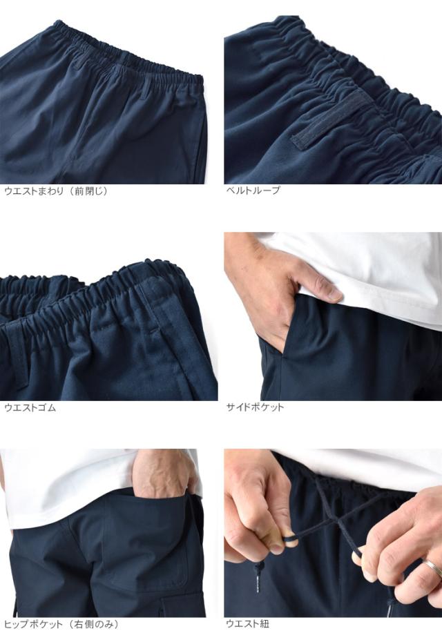ウエストゴム チノ素材 ハーフ カーゴパンツ【D7H】