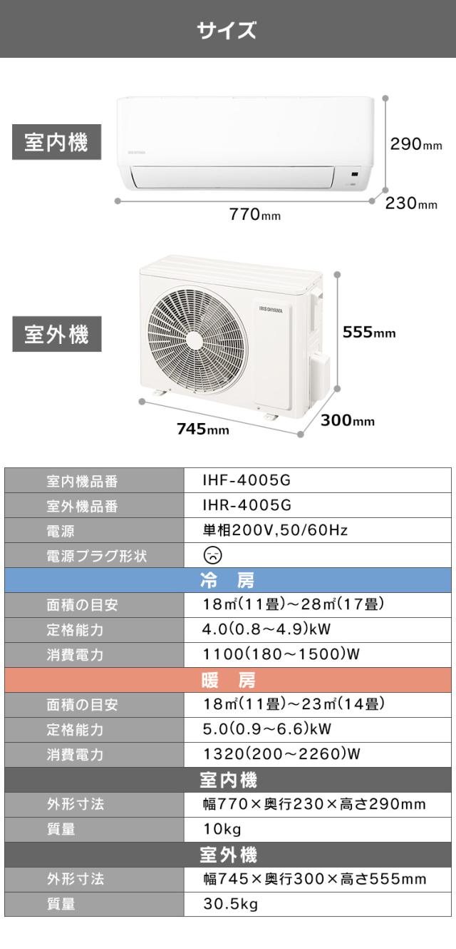 エアコン 14畳 工事費込み ルームエアコン アイリスオーヤマ クーラー4.0kW スタンダード IHF-4005G IHR-4005G 冷房 除湿 梅雨 空調 室内機 室外機 リモコン LED 省エネ エコ タイマー機能 湿気対策 リビング 自動運転 送料無料
