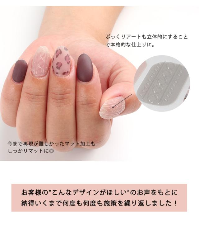 | 商品説明 | 貼るだけ簡単着せ替えネイル♪リアルジェルネイルステッカー 当店オリジナルデザインの登場♪こだわリぬいたオリジナルデザイン★ #ネイルデザインステッカー部で お客さまと一緒に開発しました! アート1つ1つを細かく印刷することで より美しい繊細なアートを実現 マット加工されたデザインにも挑戦★ 豊富なデザインバリエーションの中から気分に合わせてネイルチェンジ とにかく時短!忙しいママや週末ネイルにもピッタリ お仕事上ネイルができない方でも、週末だけのネイルが楽しめます♪ 貼るだけで完結するシンプルな工程で時間をかけずにサクッとネイルチェンジでき オフする際はぺりっと剥がすだけ♪ シールなら貼り替えるだけなので自爪への負担もほどんどありません! |
