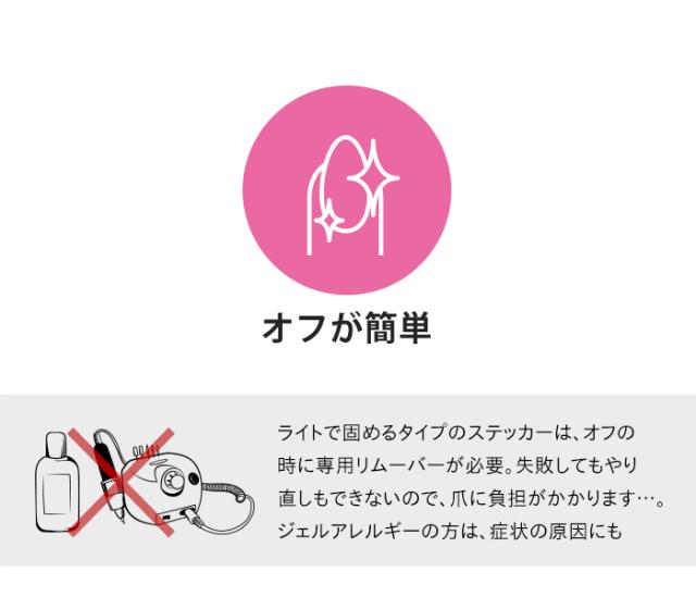 シールなら貼り替えるだけなので自爪への負担もほどんどありません!
