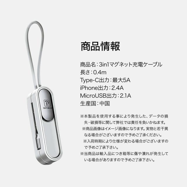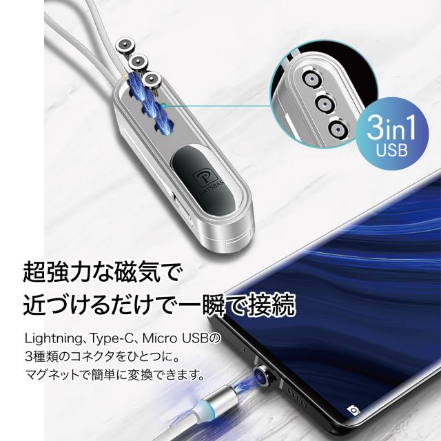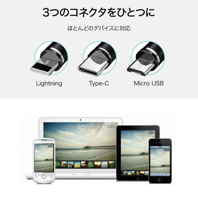 3in1 マグネット 急速充電 ケーブル 充電器 収納 iPhone type c microusb USB 3in1-usb
