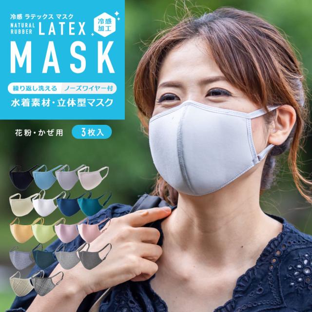 冷感加工 ラテックスマスク 3枚セット 在庫あり 即納 接触冷感加工(q-max0.3)水着素材 ノーズワイヤー入り イヤーバンド調整可 洗える 大人用 子供用 無地 花粉症 咳 風邪 予防対策
