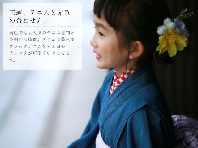 そんなお子様の表情をより引き立ててくれるカジュアルなチェック柄の襦袢をご用意いたしました。 二部式仕様なので、着付けが楽ちんなのはもちろん、ペチコートのウエスト部分はゴム仕様のため、子供ならではの急なお手洗い時にも嬉しいですね。また、着用時のお子様のストレスも軽減できそうです。
