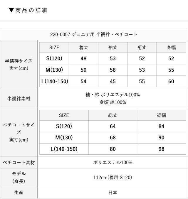 ジュニア用 半襦袢 ペチコート セット 二部式襦袢 【 日本製 肌襦袢 和装下着 国産 綿 着物 きもの 子ども 子供 120 130 140 150 】