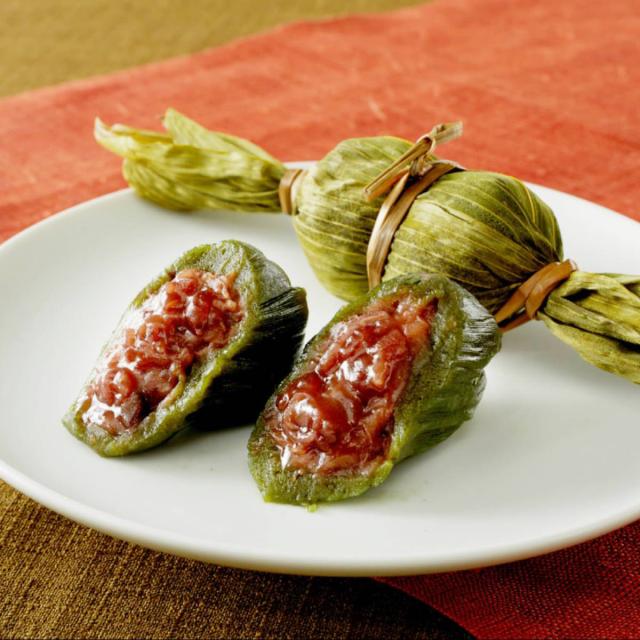 新潟名物・笹だんごです。佐渡産のコシヒカリ粉と、佐渡で摘んだヨモギ(一部新潟県産使用)で作った風味豊かな生地で特製の粒あんを包み、笹の葉で丁寧に包んで蒸しあげました。笹の葉の趣あふれる香りをお楽しみください。