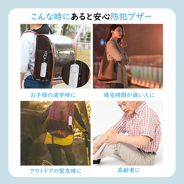 「クーポン配布中」「即納」女性 防犯ブザー 130dB大音量 LEDライト付き 防犯ブザー お知らせブザー 防犯アラーム 防犯グッズ 電池式 シンプル防犯 通学 登校下校 小学生 中学生 女の子 子供 老人 児童不審者対策 痴漢対策 敬老の日 ギフト