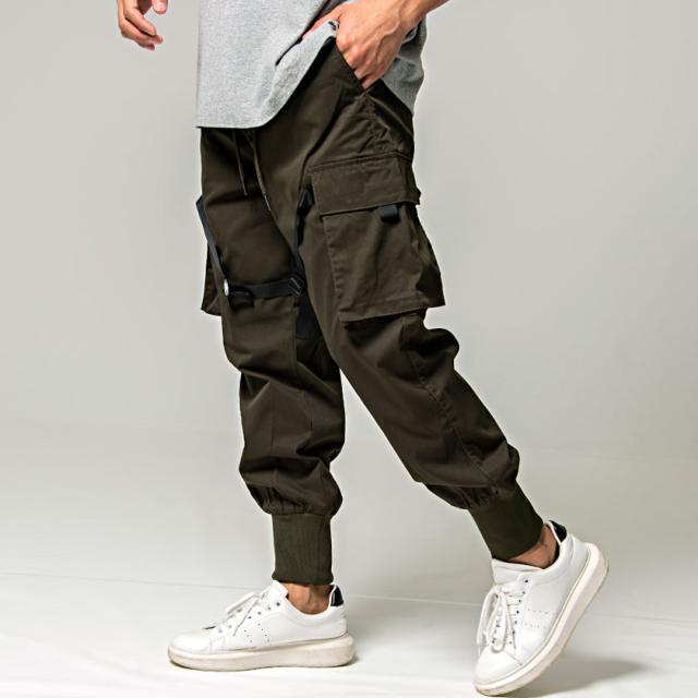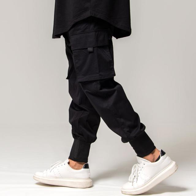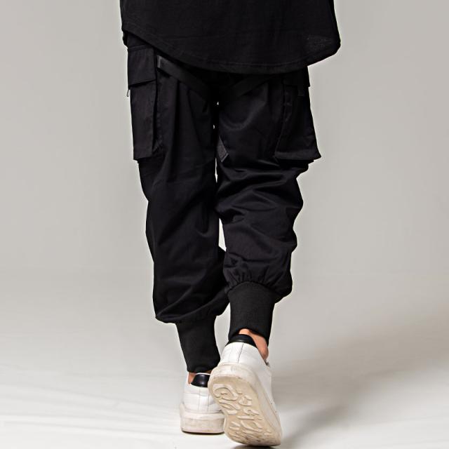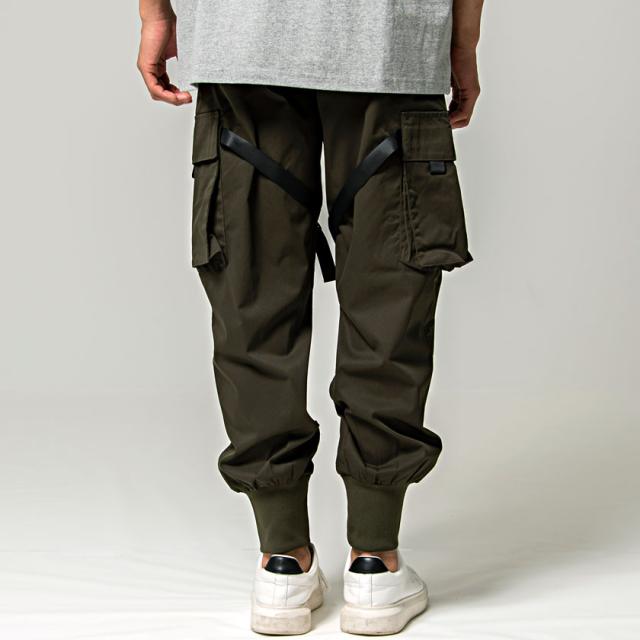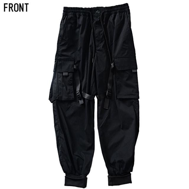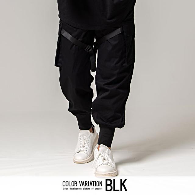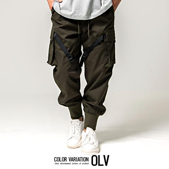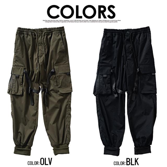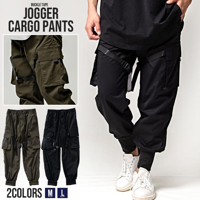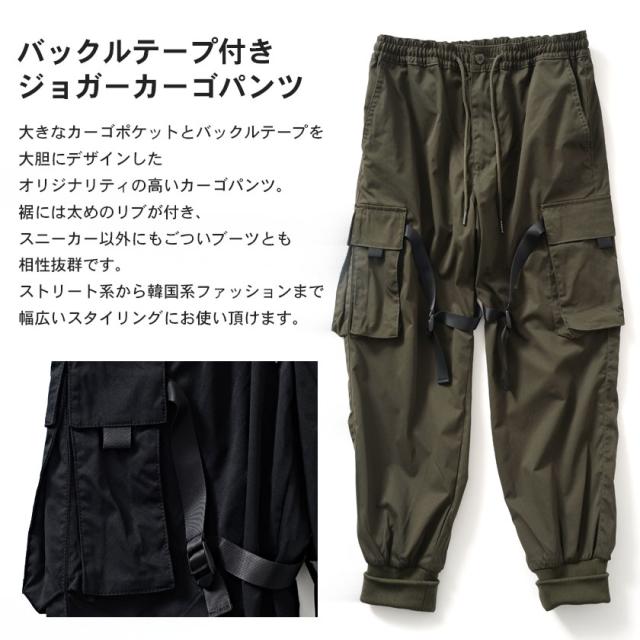 カーゴパンツ メンズ ジョガーパンツ バックルテープ付き ブラック オリーブ 黒 M L ストリート系 韓国系 ファッション ロングパンツ イージーパンツ ミリタリー M-65 M65 春 春服 夏 夏物 CavariA キャバリア配送について