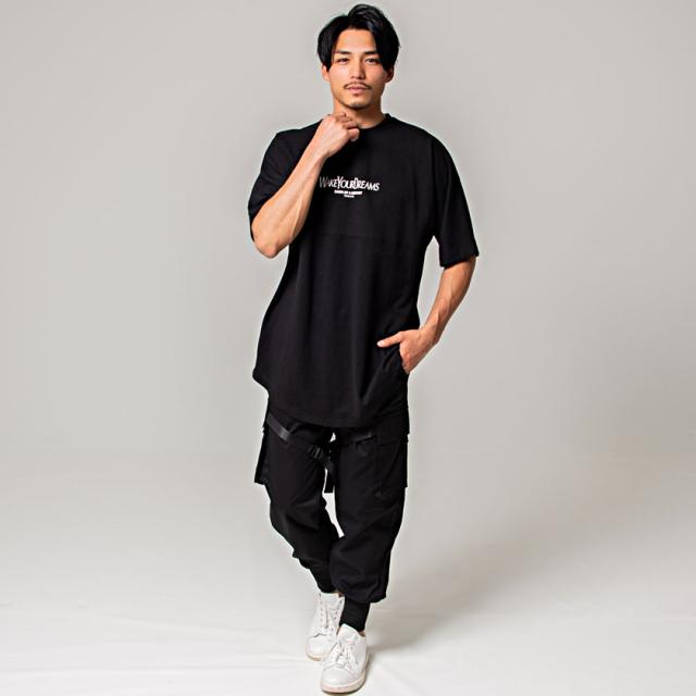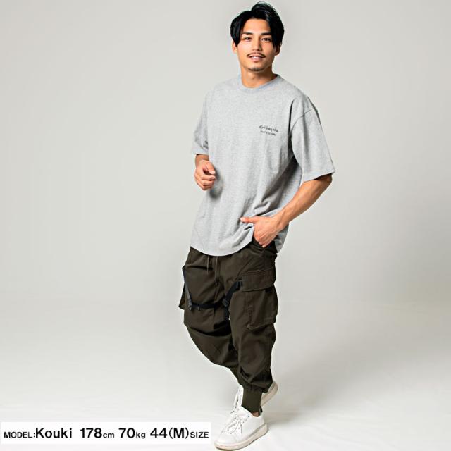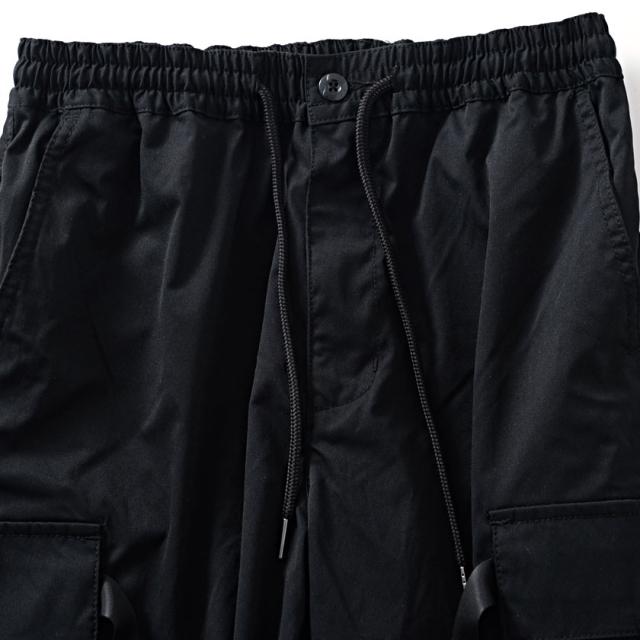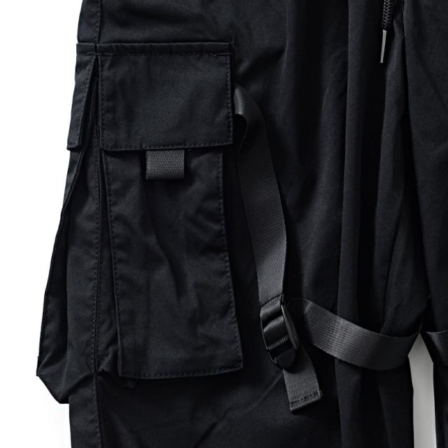 大きなカーゴポケットとバックルテープを大胆にデザインしたオリジナリティの高いカーゴパンツ。