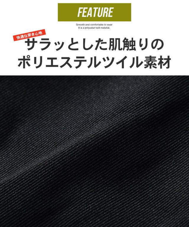 ゴムウエスト&ドローコード内蔵のイージー仕様、サラッとした肌触りのポリツイル生地で穿き心地も楽チン。