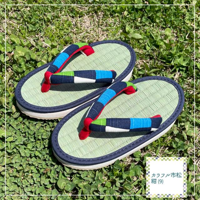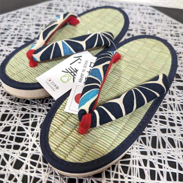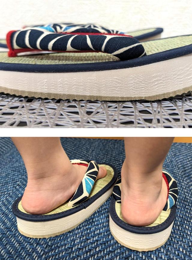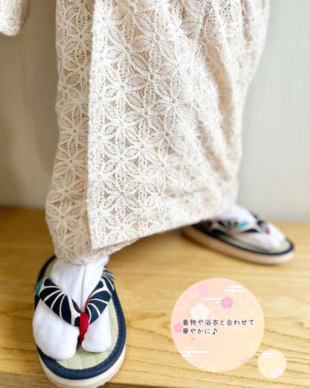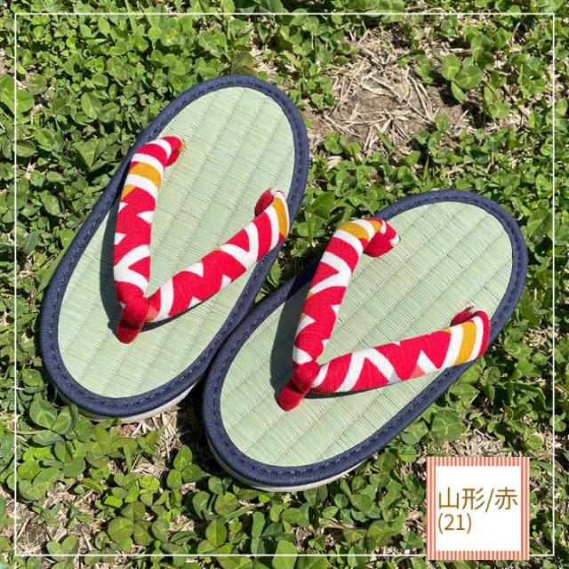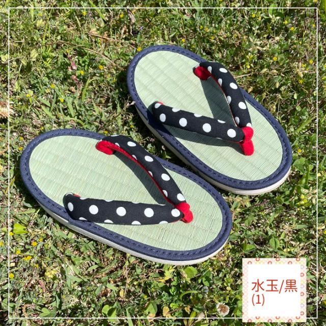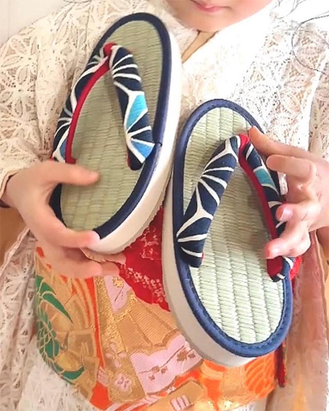 | 国産の本畳を使用しており、足の裏に熱を溜めにくくサラッとした履き心地です。 お祭りはもちろん、お遊戯、学芸会や盆踊りなどイベントの際に大活躍♪ 底は柔らかなスポンジ底のため室内でも履け、お子様の健康な足づくりにもおすすめです! モデル着用:20cmサイズ(モデル靴サイズ:約20.5cm) ■ブランド:竹春(TAKEHARU) ■生産地:日本 ■素材:[表]イグサ、[底]EVA ■重量:約90g(20cmサイズ片足で計測) ■適応サイズ(目安) 18cm前後 20cm前後 雪駄はフリーサイズとなりますので適応サイズはあくまで目安となります。 実寸サイズにつきましては画像をご確認ください。 【サイズについて】 雪駄は本来、ピッタリのサイズよりも少し小さめを選び、かかとを少し出して履くのが一般的な履き方とされています。足全体が台に乗った方が楽な方もいらっしゃいますので、スタイルに合ったサイズをお選びください。 履き始めは鼻緒が窮屈に感じられますが、履き込むほど鼻緒が程よく伸び、足に馴染んできます。 【履き始めについて】 履き始めは鼻緒が固く履きにくさを感じるかと思いますので、鼻緒の後ろや先坪の部分を軽くひっぱり、鼻緒を指で押しつぶして(ほぐして)柔らかくすると履きやすくなります。 ※無理に強い力で引っ張ると鼻緒が抜ける恐れがございます。 雪駄を履く時は親指と人指し指の間に余裕を持たせ、かかとが少し飛び出るくらい浅めに履くと鼻緒で指の間を痛めにくいです。 歩く際には重心が前になるように意識する事がコツです。 【長く使うためのコツ】 雪駄には左右がありませんので、時々左右を履き替えて頂くと長持ちします。 <ご注意> ※柄につきまして、大きな布から型を取っておりますので画像と柄の出方、ニュアンスが若干異なる場合がございます。仕様となりますので予めご了承ください。 ・商品は防水されておりません。カビなどの原因となりますので、雨天時はご使用をお控えください。 カラーバリエーションの画像が実物に最も近いお色味です。そちらをご参考ください。 ※北海道と沖縄県は、レターパックで発送いたします。 |
