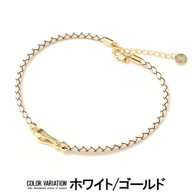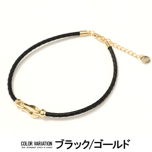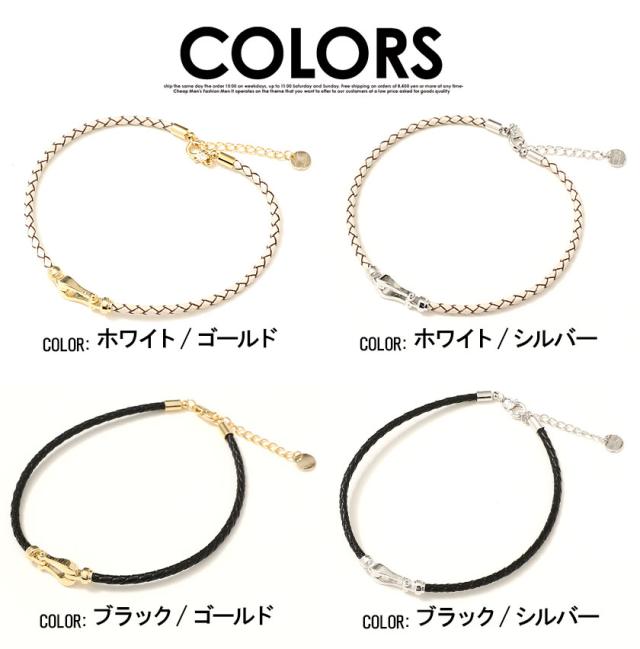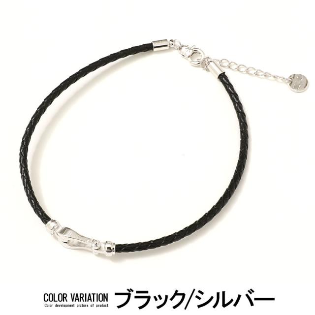 アンクレット メンズ アクセサリー ホースシュー フェイクレザー 編み込み ホワイト ブラック 白 黒 ユニセックス レディース ペア プレゼント 贈り物 ギフト 誕生日 お祝い Rafu ラフ 春 夏 2021 即日発送 [H-320]