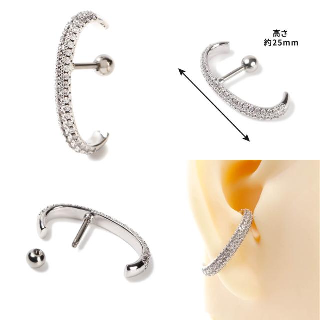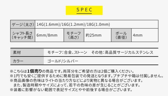 イヤーカフ風ピアス 14G 16G 18G サージカルステンレス シルバー ゴールド イヤーロブ ボディピアス ジュエル