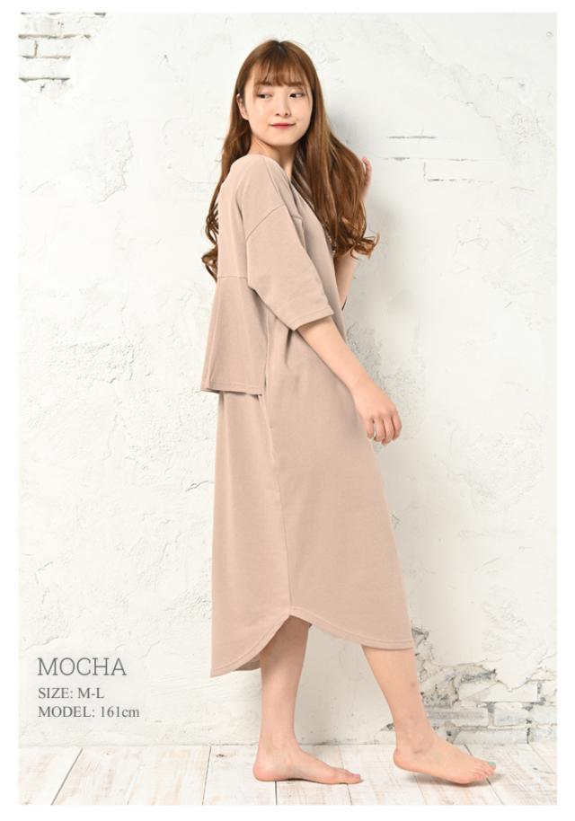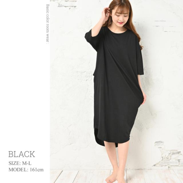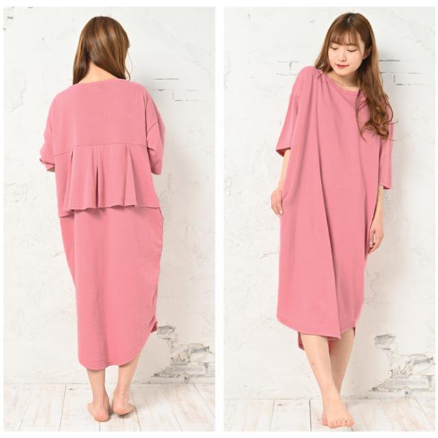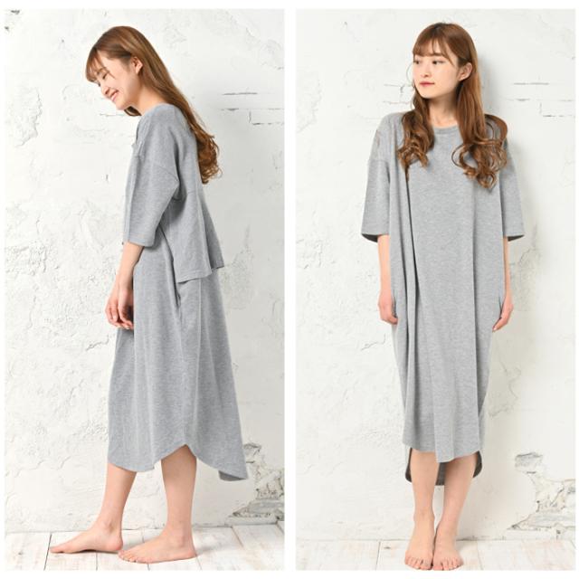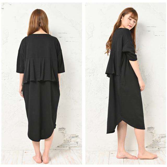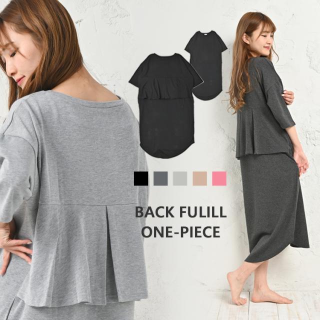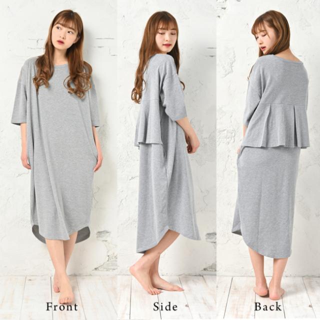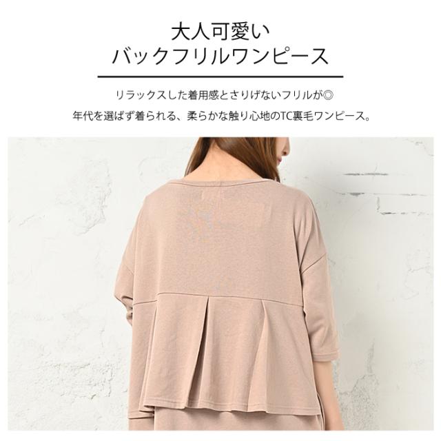 ルームウェア レディース ワンピース バックフリル 七分袖 部屋着 薄手 スウェット 大きいサイズ (hw-HW83441m) 春 夏 秋 裏毛 TC裏毛 フリルワンピース フリル おしゃれ かわいい パジャマ 部屋着 ゆったり 体型カバー ブラック グレー ベージュ ピンク agesugi_sfa