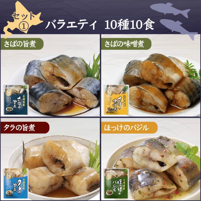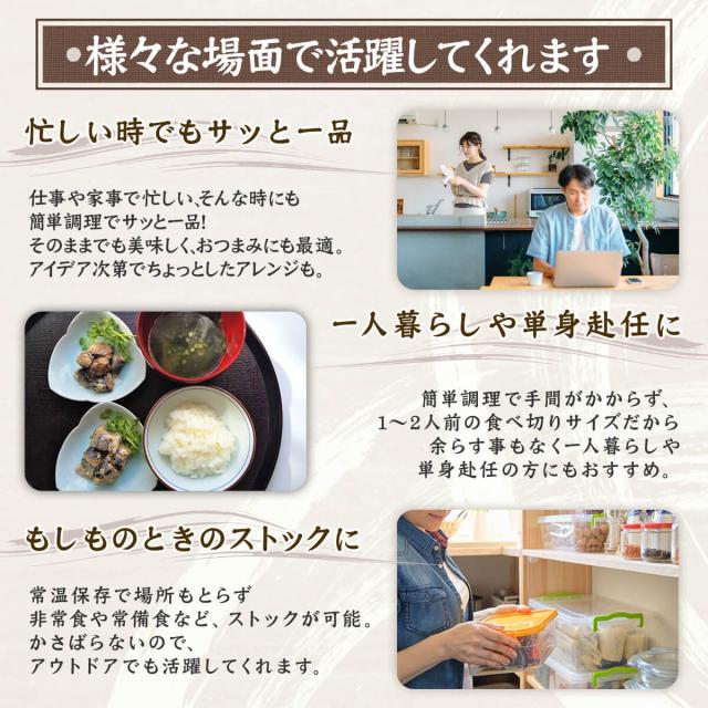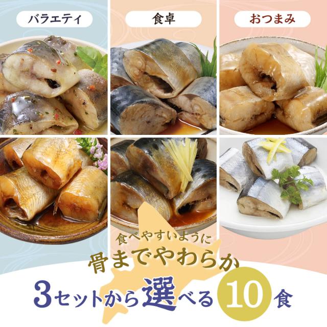 ■ バラエティ 10種10食セット さば 味噌煮 120g ■ 食卓 10種10食セット さんま 旨煮 95g ■ おつまみ 10種10食セット タラ 旨煮 80g |