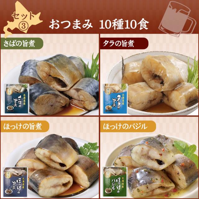 ■ バラエティ 10種10食セット ほたて バジル 65g ■ 食卓 10種10食セット さけ 旨煮 80g ■ おつまみ 10種10食セット ほたて バター醤油 65g |