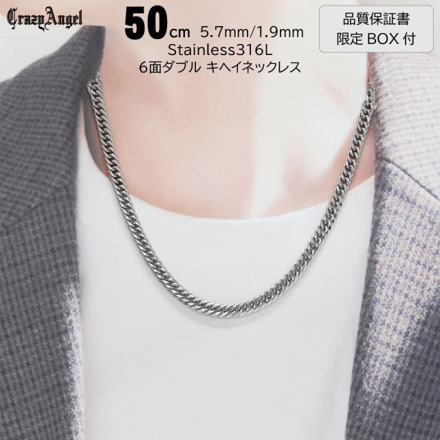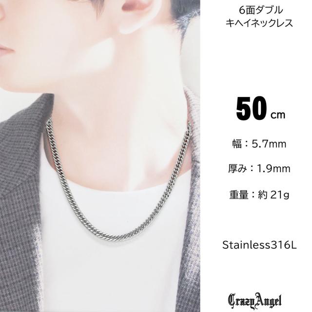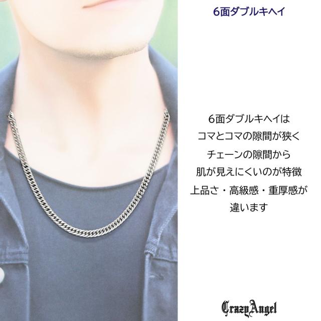 喜平ネックレス メンズ チェーン ステンレス 6面 ダブル w 50cm キヘイネックレス キヘイチェーン シルバー 銀 クレイジー エンジェル