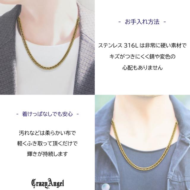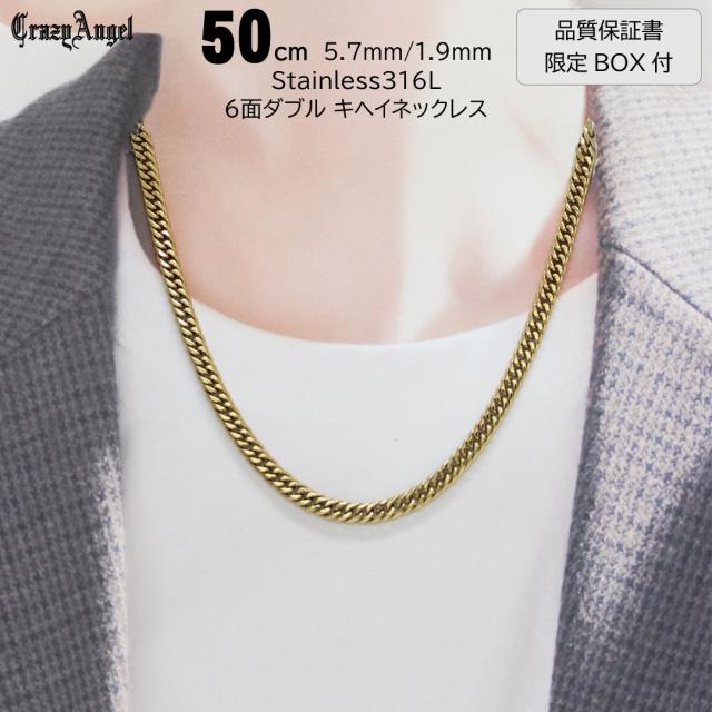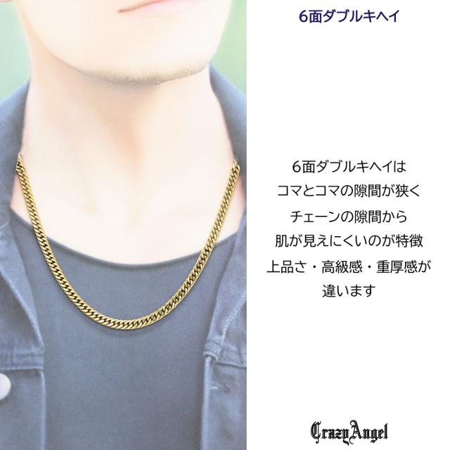 喜平ネックレス メンズ チェーン ステンレス 6面 ダブル w 50cm キヘイネックレス キヘイチェーン ゴールド 金 クレイジー エンジェル