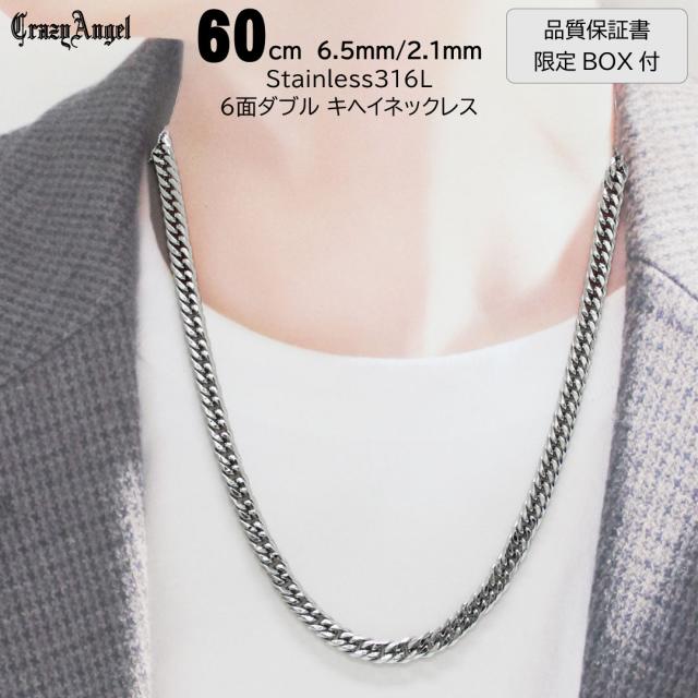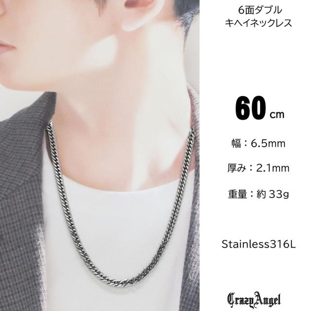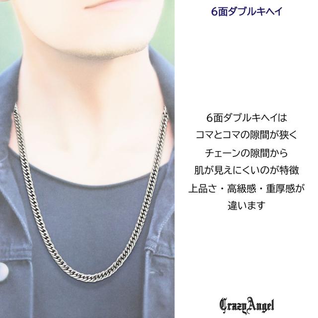 喜平ネックレス メンズ チェーン ステンレス 6面 ダブル w 60cm キヘイネックレス キヘイチェーン シルバー 銀 クレイジー エンジェル
