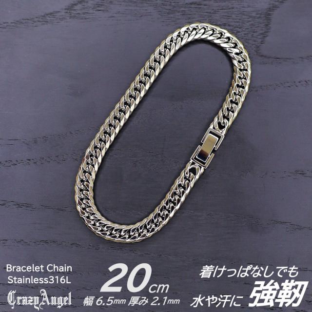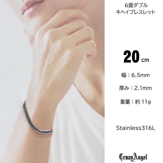 喜平ブレスレット メンズ チェーン ステンレス 6面 ダブル w 20cm キヘイブレスレット キヘイチェーン シルバー 銀 クレイジー エンジェル