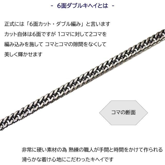 ステンレスでは流通が少ない6面Wキヘイは、コマとコマの隙間が狭いので、隙間から肌が見えにくく、上品さ・高級感が違います。