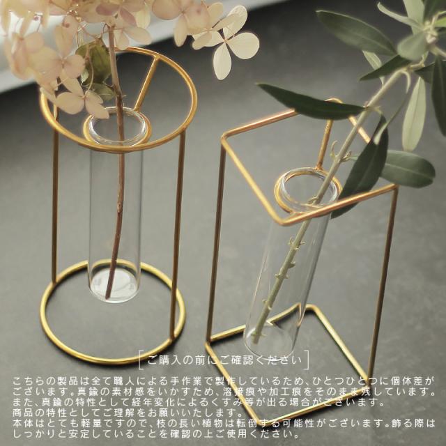 | 注意事項 | こちらの製品は全て職人による手作業で製作しているため、ひとつひとつに個体差がございます。真鍮の素材感をいかすため、溶接痕や加工痕をそのまま残しています。また、真鍮の特性として経年変化によるくすみ等が出る場合がございます。商品の特性としてご理解をお願いいたします。本体はとても軽量ですので、枝の長い植物は転倒する可能性がございます。飾る際はしっかりと安定していることを確認の上ご使用ください。 |