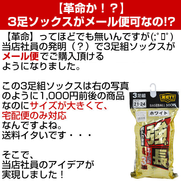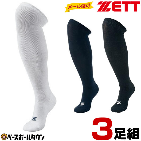 野球 ソックス 3足組 少年用~一般用 メール便可 ゼット 3P ホワイト カラーソックス ジュニア~大人 BK03C 白靴下 黒靴下 紺靴下 BK03CS BK03CM BK03CL BK03CO 男の子 女の子 キッズ