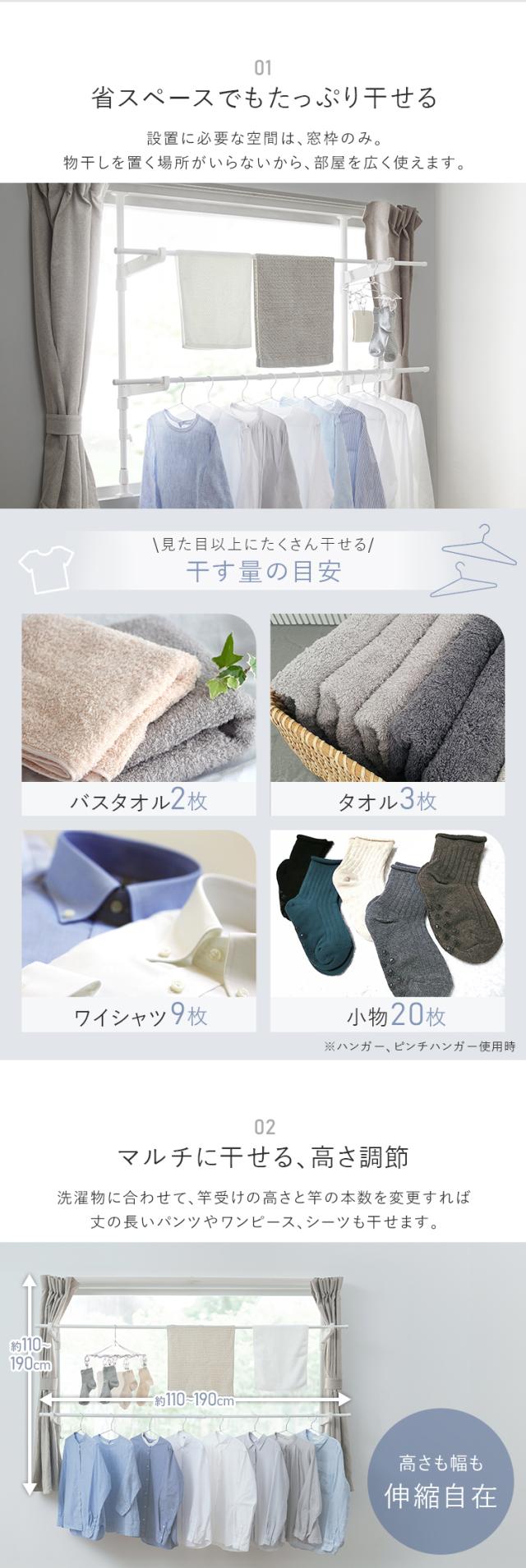 (検索用:物干しスタンド 室内物干し 洗濯物干し 窓枠物干し 省スペース 収納 伸縮自在 簡単設置 3人分 一人暮らし まとめ洗い 部屋干し 新生活 4905009473441 4967576506632 4967576506625)