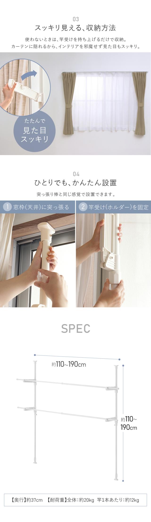 高さも幅も伸縮自在なので洗濯物や窓枠にピッタリのサイズで使えます。