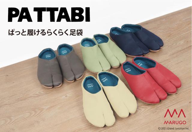 たびりら でお馴染みの老舗足袋メーカー 丸五より、 ぱっと履けるらくらく足袋「PATTABI -パッタビ- 」が誕生。 脱ぎ履きも持ち運びも、らくらく。メッシュ素材で素足でも気持ちいい。 アーチの持ち上がりと、足指に力を入れやすい足袋の形で足の健康をサポートします。 屋内外で使用可能な軽量アウトソールを使用しているので、ルームシューズ、旅行先、オフィス、ちょっとしたお出かけ、お祭りへ行くときなど様々な場面でお使いいただけます。