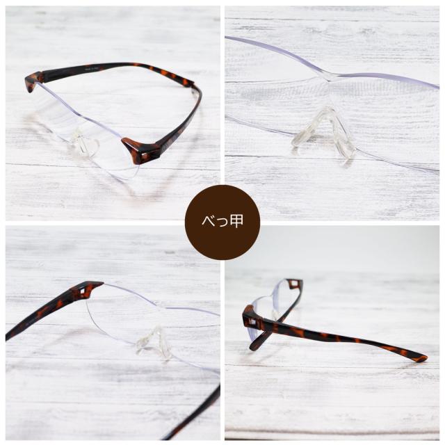 薄くて軽いオリジナルレンズで、歪みが少なく疲れにくく、枠なしレンズで広い視野を確保出来ます。