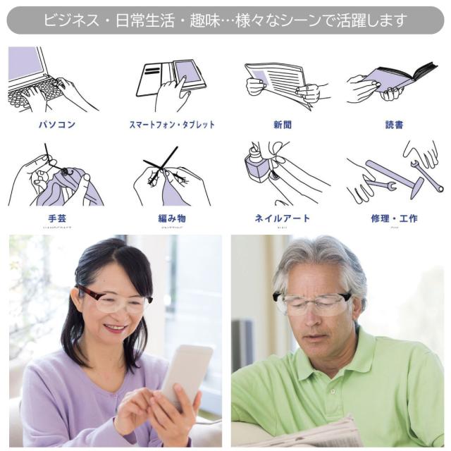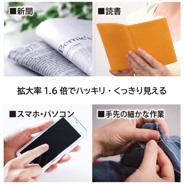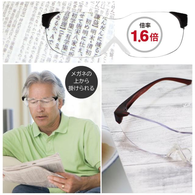 ルーペ メガネ 拡大鏡 1.6倍率 オーバーグラス 両手が使える 大きく見える 眼鏡 スマホ 読書 新聞 パソコン 資料 男女兼用