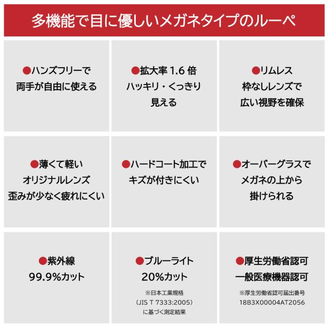 メガネタイプルーペでは唯一厚生労働省認可を受けた、安心してお使い頂ける商品です。
