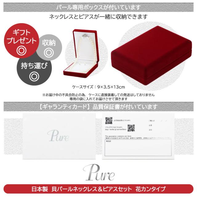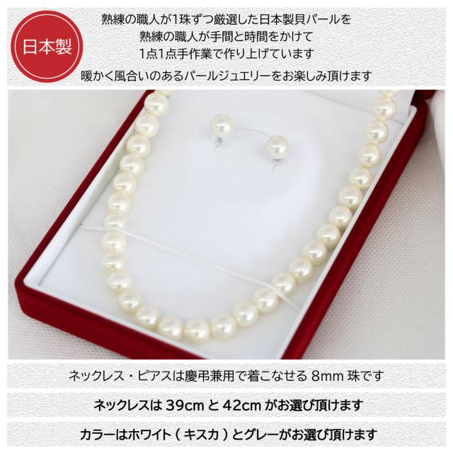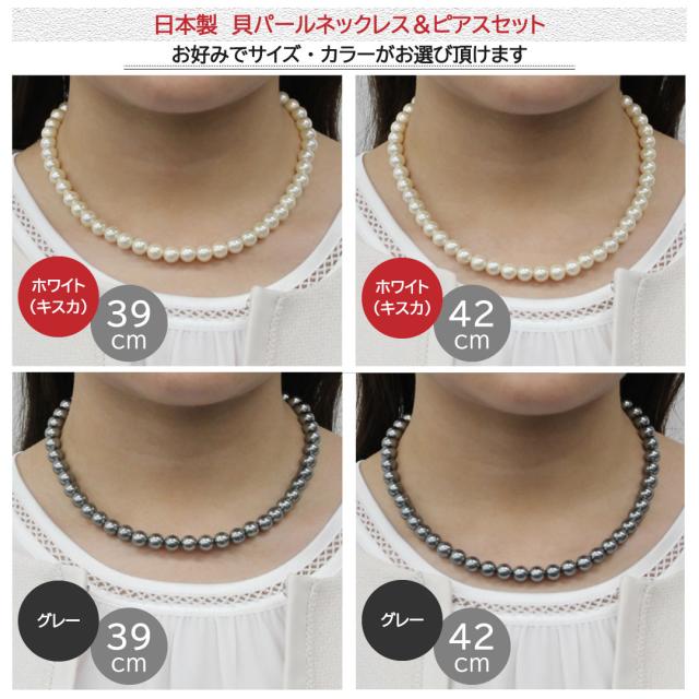 パールネックレス 冠婚葬祭 花カン ネックレス パール 真珠 セット 8mm 39cm 42cm パールネックレスピアスセット 冠婚葬祭パールネックレス 貝パール ホワイト キスカ グレー 結婚式 葬式 慶事