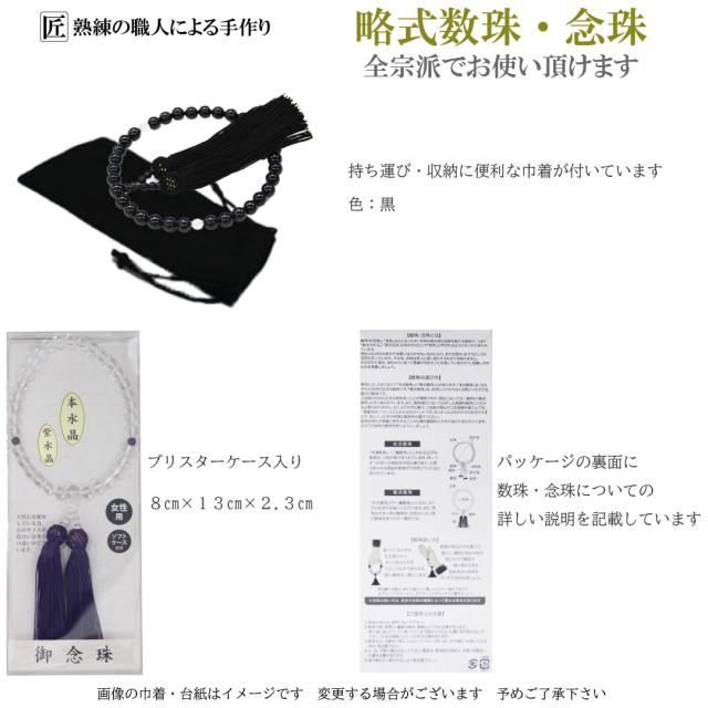 数珠 女性用 水晶 念珠 略式念珠 本水晶 紫翡翠 アメジスト クリア 紫 パープル 8mm 葬式 葬儀 法事 数珠入れ 全宗派対応