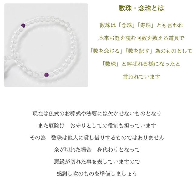数珠を持つ事で、持ち主の身を守る冥加を得るとされています。