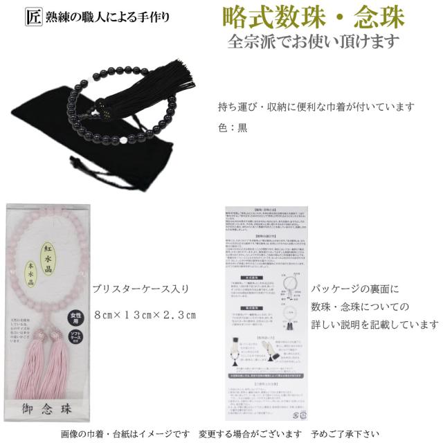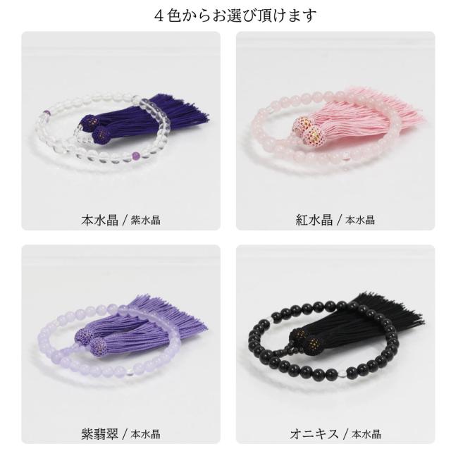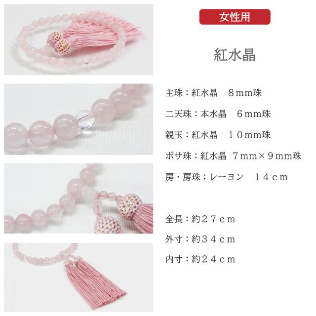 数珠 女性用 水晶 念珠 略式念珠 本水晶 紅水晶 ローズクォーツ クリア ピンク 8mm 葬式 葬儀 法事 数珠入れ 全宗派対応