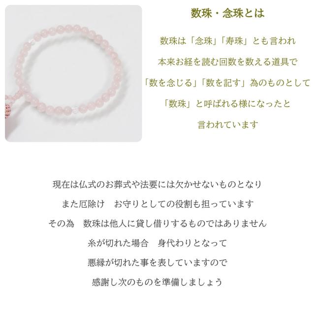 数珠を持つ事で、持ち主の身を守る冥加を得るとされています。