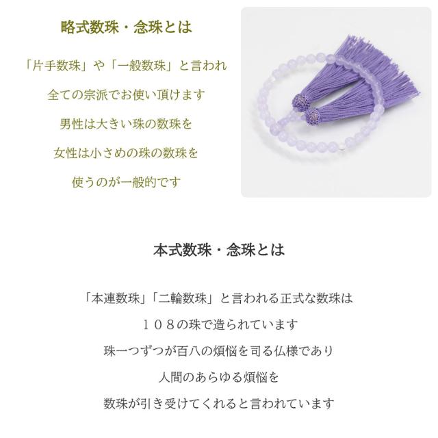 - 天然石を使っていて綺麗な数珠です。ソフトケースも付いていて便利で有り難いです。