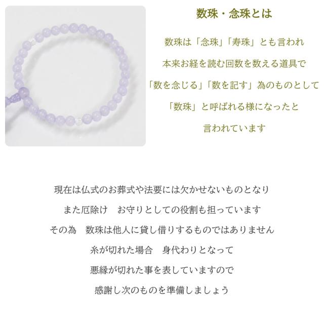 数珠を持つ事で、持ち主の身を守る冥加を得るとされています。