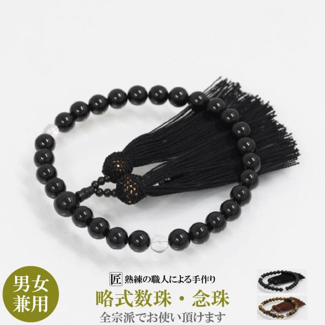 数珠 男性用 水晶 念珠 女性用 略式念珠 本水晶 オニキス 黒 ブラック クリア 10mm 葬式 葬儀 法事 数珠入れ 全宗派対応 男女兼用