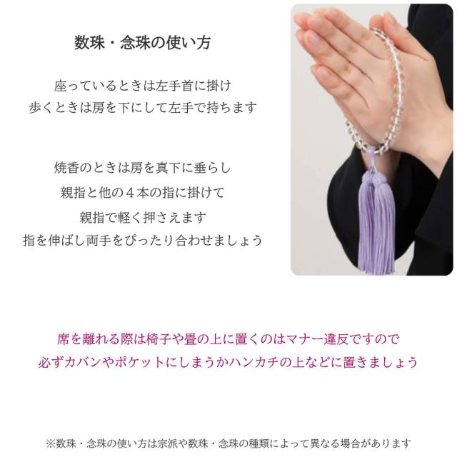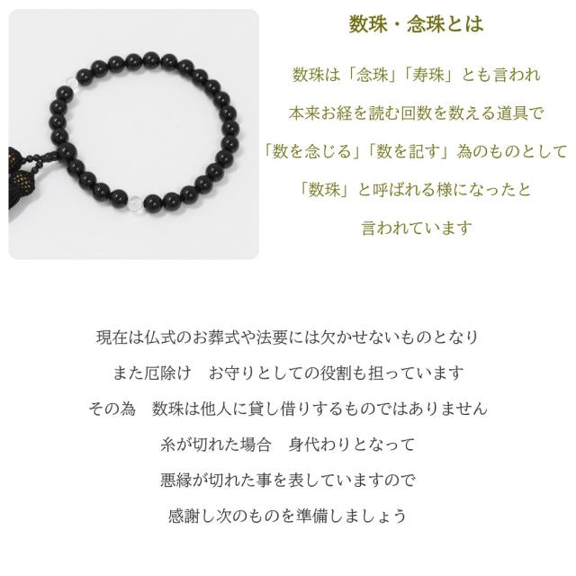 様々な葬祭・葬儀・法要・法事で、宗派を問わず安心してお使い頂ける略式数珠・念珠です。