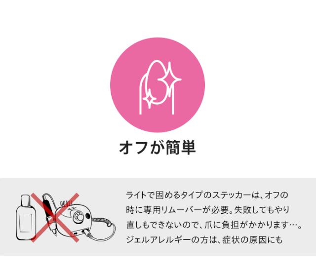シールなら貼り替えるだけなので自爪への負担もほどんどありません!