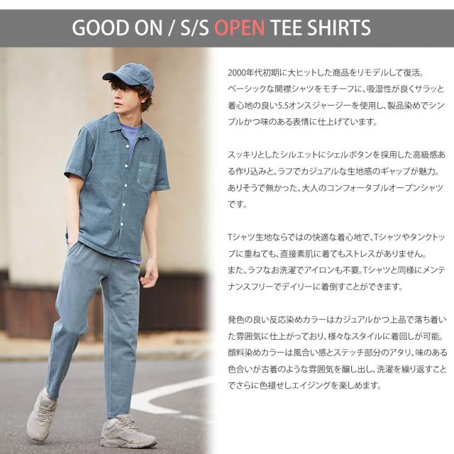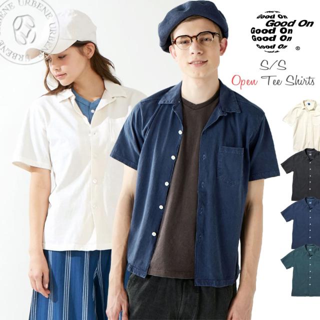 半袖シャツ グッドオン GOOD ON 半袖 ショートスリーブ オープンTシャツ ( GOST1605 ) メンズ レディース ピグメントダイ 後染め カジュアルオープンシャツ Tシャツ カットソー エイジング 開襟シャツ ホワイト 黒 ブラック ネイビー アメカジ おしゃれ アーベン