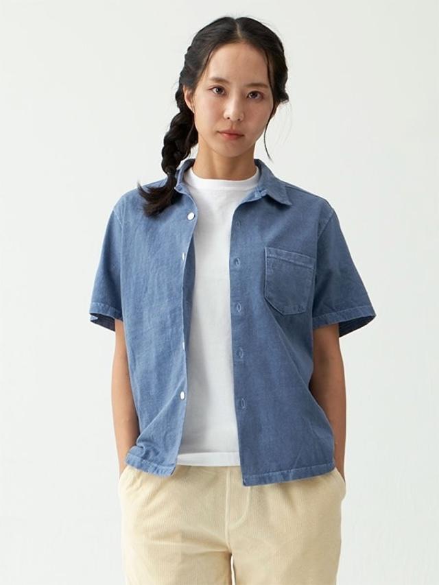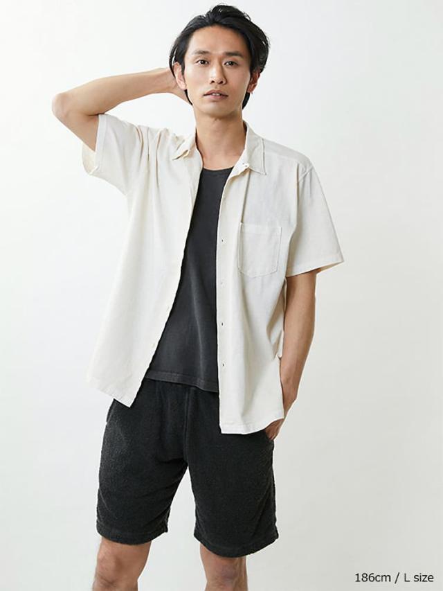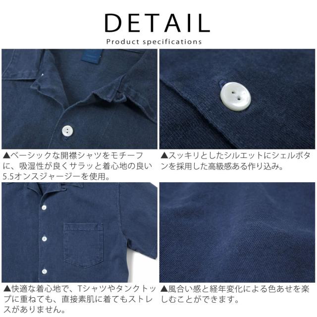 ベーシックな開襟シャツをモチーフに、吸湿性が良くサラッと着心地の良い5.5オンスジャージーを使用し、製品染めでシンプルかつ味のある表情に仕上げています。
