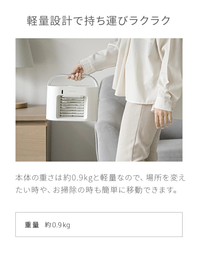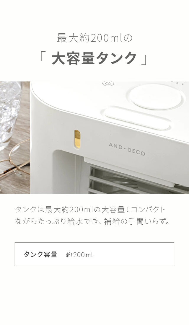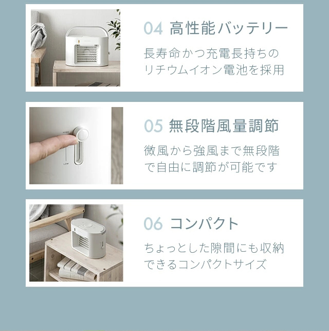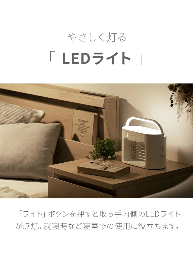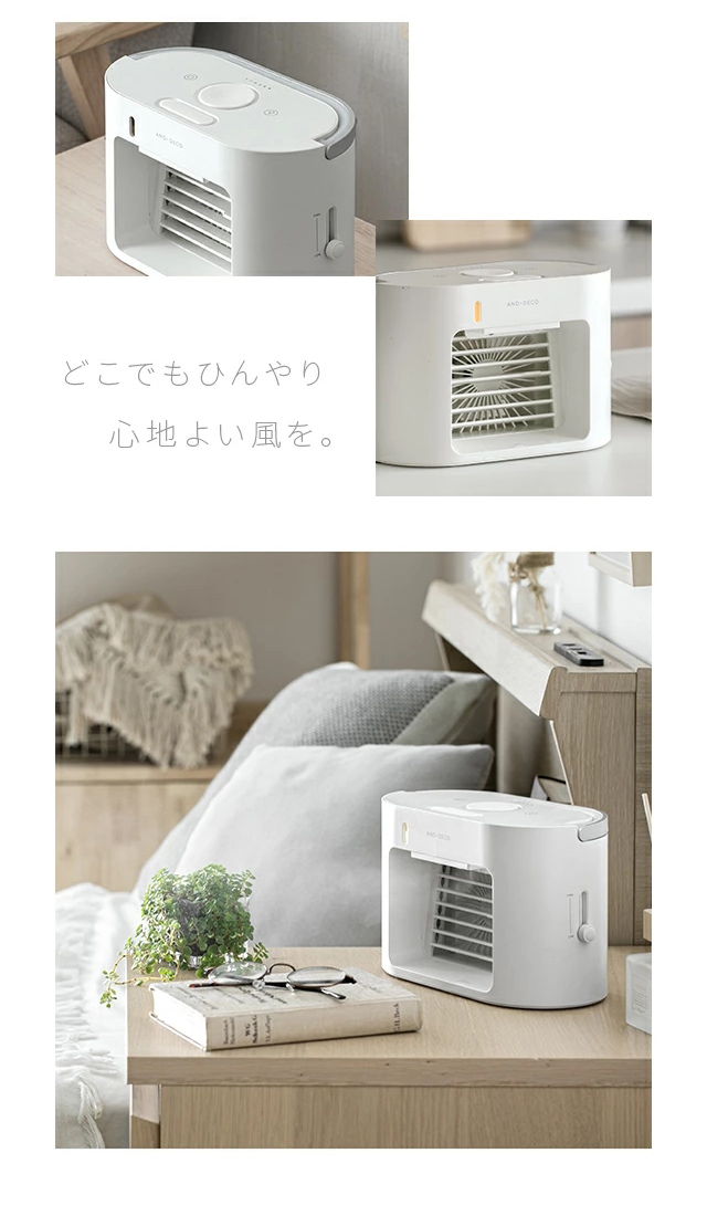 冷風機 冷風扇 ポータブルクーラー 充電式 スポットクーラー 卓上 加湿機能付き 風量3段階調節 3段階LEDランプ付き おしゃれ USB充電式 ポータブルエアコン ミニクーラー 小型 卓上冷風扇 首振り