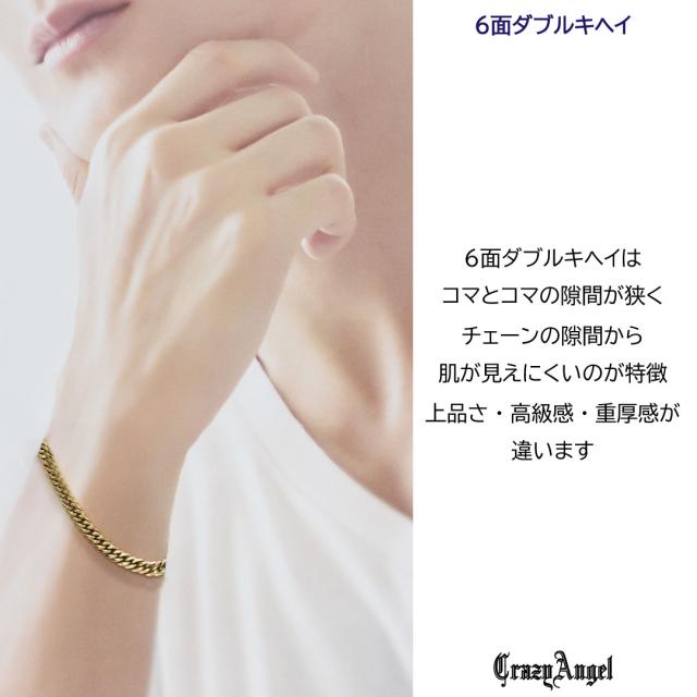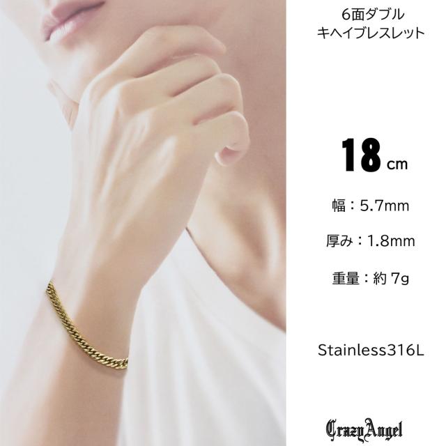喜平ブレスレット メンズ チェーン ステンレス 6面 ダブル w 18cm キヘイブレスレット キヘイチェーン ゴールド 金 クレイジー エンジェル